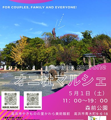 高浜市で定期的に開催されているオニマルシェと、岡崎市で開かれている杜deマルシェがコラボした「オニ杜マルシェ」が、かわら美術館...