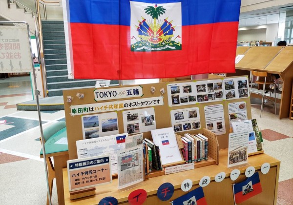 幸田町立図書館で9月13日まで 来年開催予定の東京五輪・パラリンピックでホストタウンとして交流するカリブ海の国ハイチを知っても...