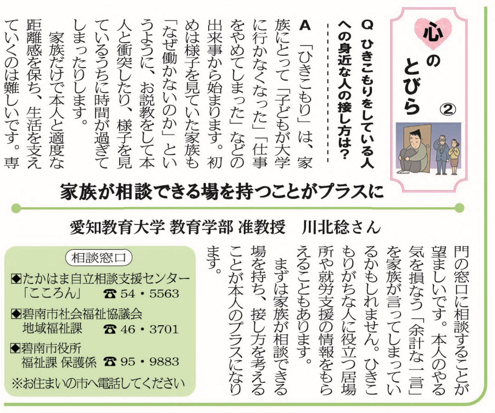 心のとびら 2021.07.29 Tweet 碧南, 高浜 ひきこもり、たんぽぽニュース 関連記事一覧 碧南 大浜てらまちウォーキング 2023.10.12 「一閑張」の展示販売 2020.11.12 三河高浜駅前にアマビエと鬼瓦 2021.08.13 情報ランド 2025.11.10 親鸞さまの絵をお寺で展示 2020.09.25 「三河焼」の七輪や植木鉢 2021.05.27 高浜 市制50周を盛り上げる食べ物 2020.09.19 高浜 2会場でクリスマス 2021.12.15