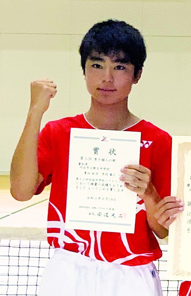 団体戦は朝日中を退けた清明学園が日本一に。豊田君は個人戦にも出場し、5位入賞の好成績を収めました。