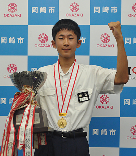 新香山中学3年の若宮駿士さんが、8月19日~22日に山形県で開かれた「JOCジュニアオリンピックカップ全国中学生カヌー大会」の男子カナディアンシングル500メートルで優勝。10月12日に市役所で、頂点に立った喜びを、中根康浩岡崎市長に報告しました。
