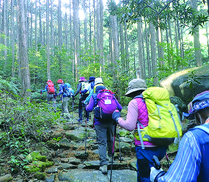 同クラブは30~70歳代の約80人で活動。月1回、主にバスを利用したハイキングを楽しんでいます。昨年は光城山(長野)や熊野古道(三重)などを歩きました=写真。