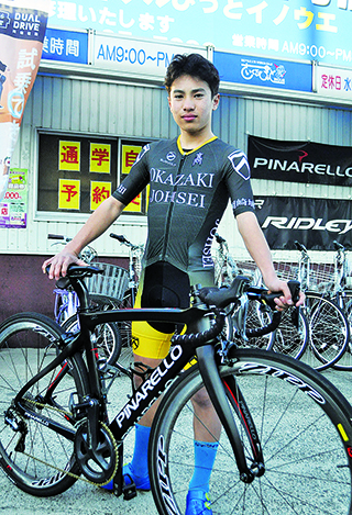 小柄ですが、瞬発力と体力があり、後半の追い込みが持ち味。両親が自転車専門店「サイクルぴっとイノウエ」=同=を営み、子どもの頃から競技用のロードバイクは身近な存在。中学までサッカー部でしたが、高校進学を機に自転車に専念することにしました。
