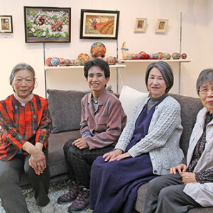 野村證券岡崎支店=岡崎市康生通西=の開設50周年記念として、同支店と市内の石工業者がコラボ。オリジナルの石彫の招き猫12体がカウンターや応接室に置かれ、玄関口には石庭=写真=もお目見え。来客の目を楽しませています。