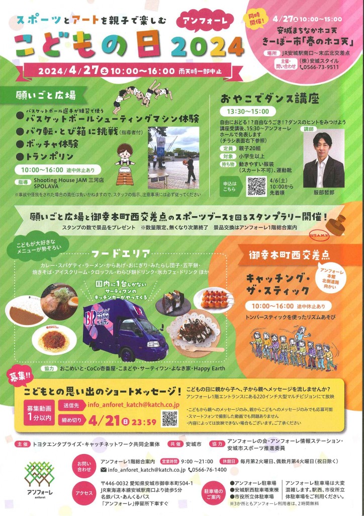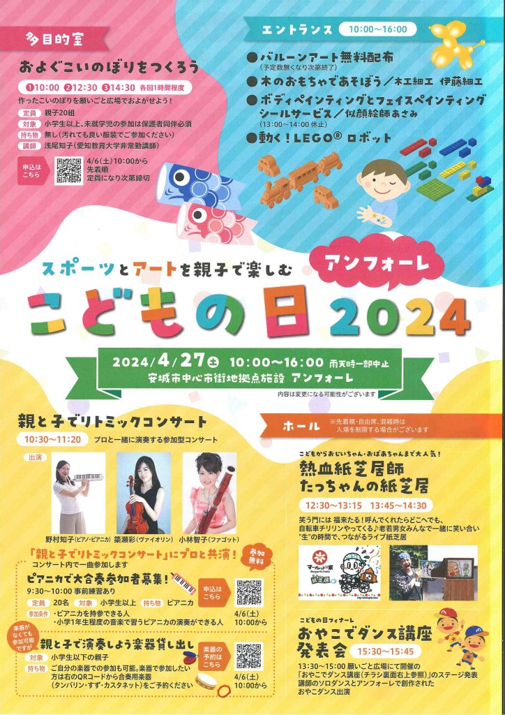 安城市御幸本町のアンフォーレで4月27日午前10時~午後4時、こどもの日にちなんだイベントが開催されます。