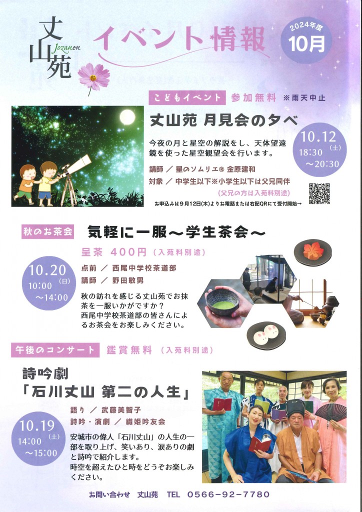 安城市和泉町の丈山苑で10月19日午後2時から、午後のコンサート「詩吟劇『石川丈山 第二の人生』」が行われます。