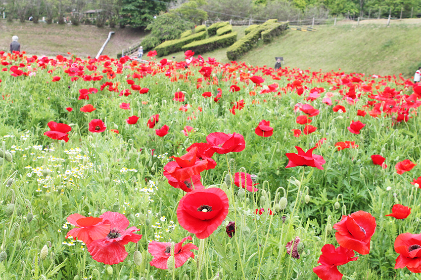 また、同陣屋の入り口付近では、最盛期を迎えたポピーが“赤いじゅうたん”を広げ、初夏のさわやかな風に花弁を揺らして来場者を出迎えます。