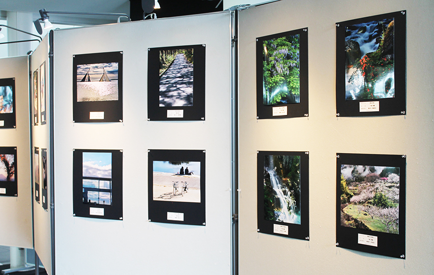 12人が出品。岡崎城公園で見られる色鮮やかな藤や乙川河畔の桜をはじめ、靄(もや)にかすむ山中湖(山梨県)、北海道釧網本線を走るSLなどを撮影した48作品が展示されています。