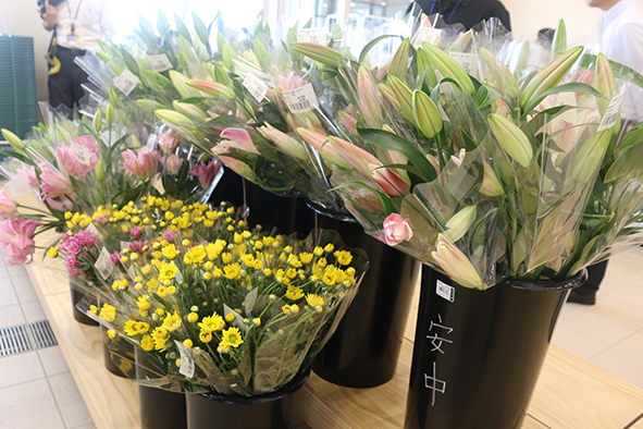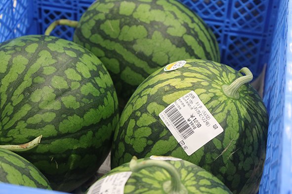 碧海地区で4店舗目になるでんまぁと同店では、地元産の採れたての野菜や果物、花などが店頭にぎっしり。