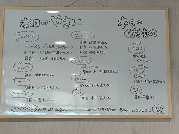でんまぁと店長の犬塚哲さんは「農家さんの商品を見てもらいたい。碧海そだちを見てもらうための舞台です。目玉は全ての野菜です」と、新鮮さと安心の地産品をアピールします。