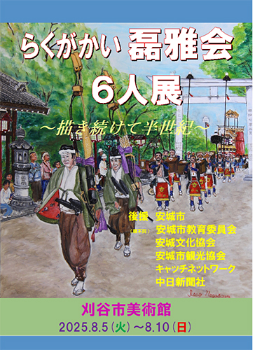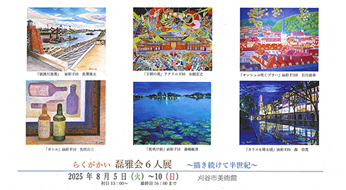 「らくがかい磊雅会6人展~描き続けて半世紀」が8月5日から、刈谷市美術館2階展示室で開催されます。8月10日まで、午前9時(5日は午後1時)~午後5時(10日は4時まで)。