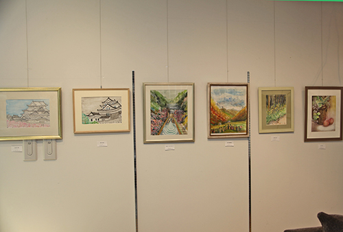 安祥公民館で毎月第1・2土曜の午前9時~正午、高棚町の近藤義行さんを講師に、油彩画や水彩画を楽しむメンバー13人が26点を展示しています。