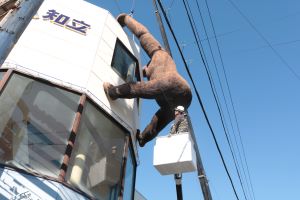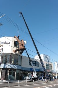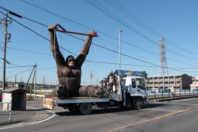 “建物にぶら下がった姿”で有名だった巨大オブジェ「知立のキングコング」が、この秋そっと新天地へと旅立ちました。