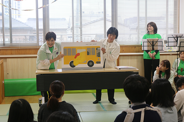 大型絵本とマット寄贈し親子と交流