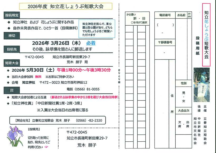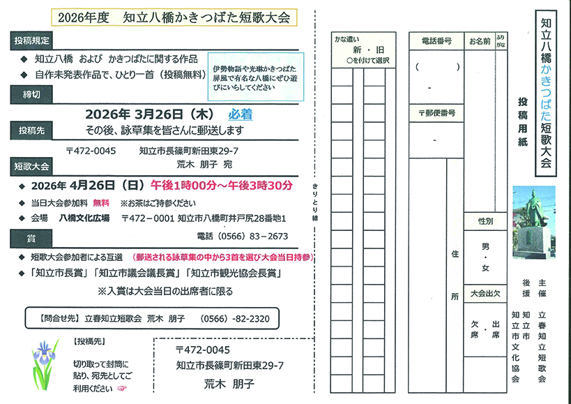 2026年3月26日(木) 必着 *その後、詠草集を皆さんに郵送します。