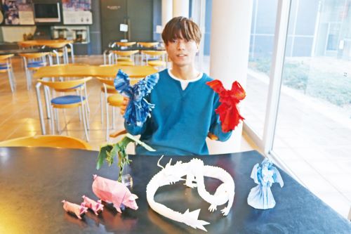 完成できない悔しさに折り紙から離れた中学時代、刈谷東高校折り紙部を経て19歳で、アマチュア最上級クラスとされる、1200枚のうろこが連なった、「竜神3・5」の完成に成功。催し会場で、「インスタ見てます」と声をかけられることもあるそうで、自分の作品が「誰かの何かを始めるきっかけになればうれしい」と語ります。