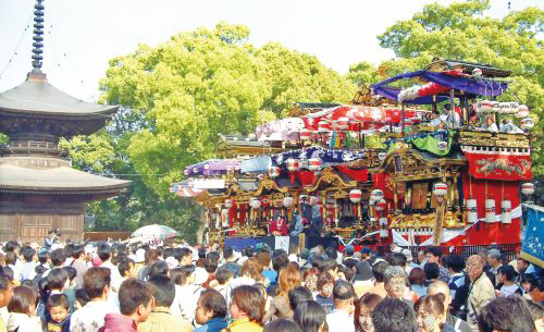 今年は2年に1度の本祭り。5町の山車5台が同神社に集結し、山車文楽(宝町、山町、中新町、本町)や、人形浄瑠璃からくり芝居(西町)を上演します。