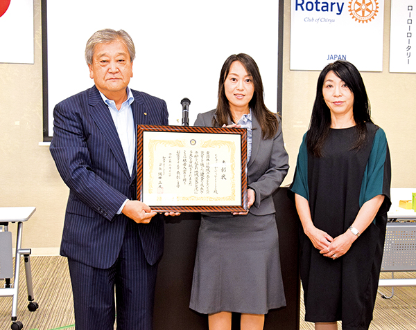 知立ロータリークラブ(RC)が6月24日、ボランティアグループ「ちりゅっ子かふぇmagocoro」に杜若大賞を贈りました=写真。