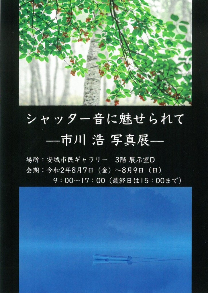安城市民Gで「シャッター音に魅せられて」展 2020.08.07 市川浩さんが写真展を開催中 安城市民ギャラリー(同市安城町)展示室Dで8月7日から9日まで、市川浩さんの写真展「シャッター音に魅せられて」が開かれています。午前9時~午後5時(最終日3時まで)。観覧無料。 (このイベントは終了いたしました) Tweet ギャラリー, 安城 写真展, 安城市民ギャラリー 関連記事一覧 安城市の写真愛好家がクモの写真集を制作 2022.02.12 刈谷市に車いす2台寄贈 2020.11.10 GTRニッセイが全日本軟式野球大会へ 2021.10.08 「ウクライナで学んだスラヴ⾳楽の魂」 2025.07.29 〝本證寺みそ〟初仕込み〈安城〉 2022.04.27 10月2日まで 篆刻家丹羽さんと若手の作品展《知立》 2022.09.27 安城市民ギャラリー収蔵品展 2021.06.10 安城・梨の里公民館で4月9日に「梨のお花見」を開催 2023.04.05
