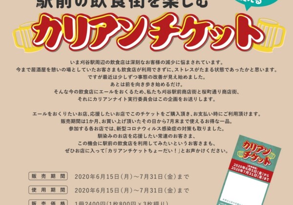 飲食店などでお得 刈谷駅周辺の飲食店など29店で、3枚つづりで1冊3000円分のチケットを2400円で購入できるお得な「カリア...