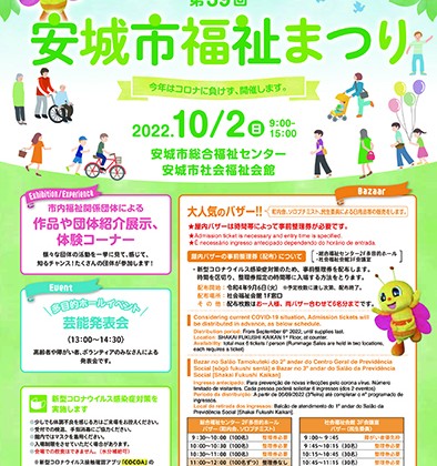 第39回安城市福祉まつりが10月2日、安城市赤松町の市総合福祉センター・市社会福祉会館で開催されます。市内の福祉関係団体の紹介...