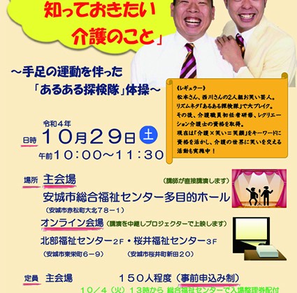 きょう午後1時から入場整理券配布 安城市赤松町の市総合福祉センターで10月29日午前10時から、人気お笑いコンビ「レギュラー」...