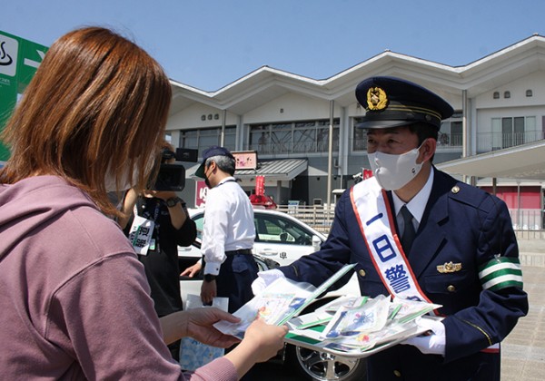 刈谷出身で元プロ野球選手の赤星憲広さんが4月12日、刈谷署の委嘱で一日警察署長を務め、刈谷ハイウェイオアシスで来場者らに安全運...